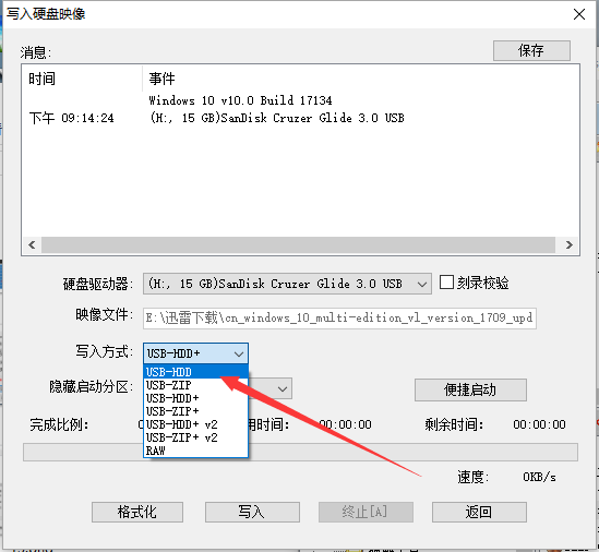 这时就会弹出设置,设置如何把系统镜像写入U盘的方式