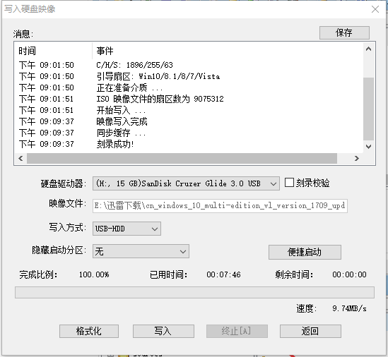 然后点击写入,就开始将系统镜像写入到你的U盘,整个过程大约在5-10分钟